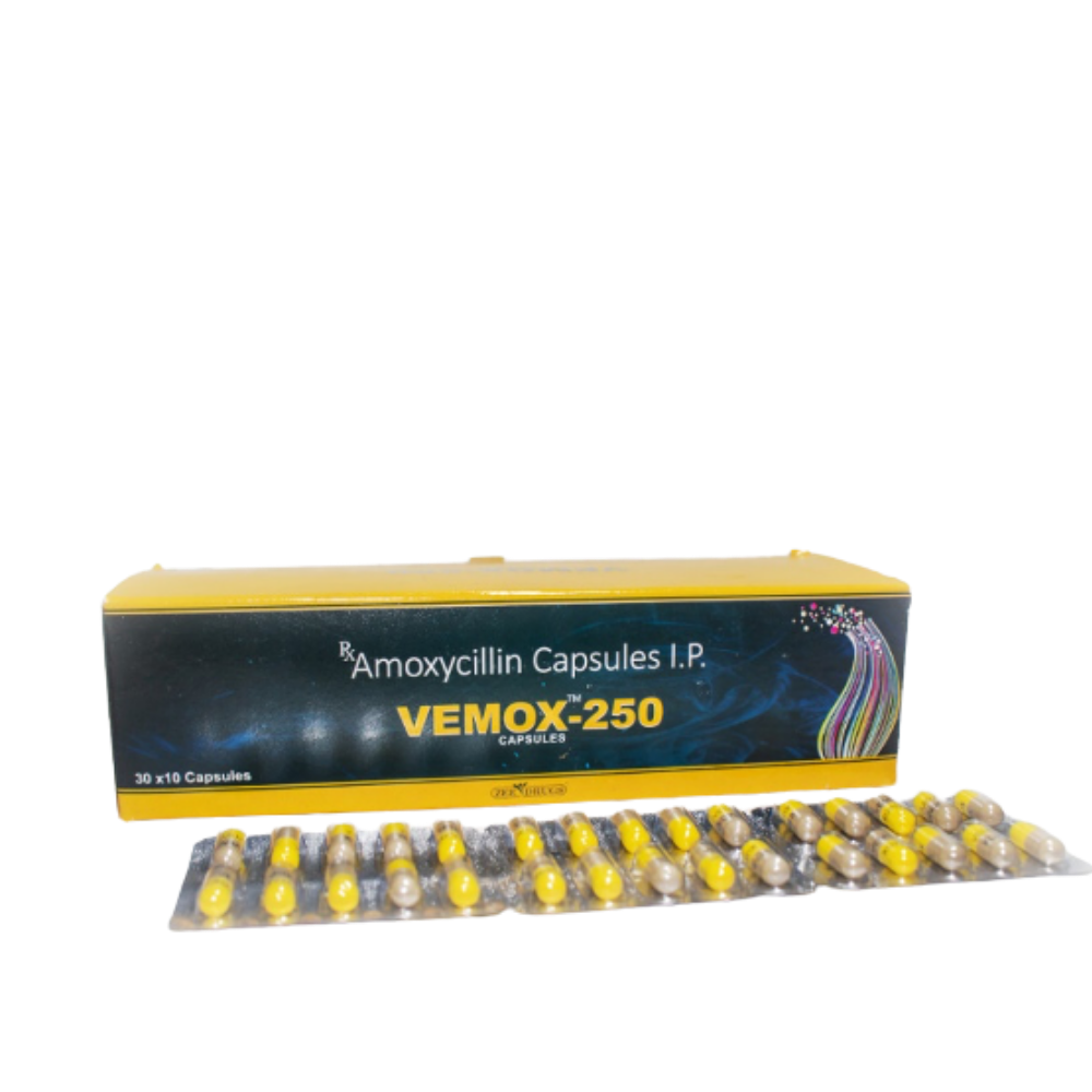 Product Name: Vemox 250 Manufacturer: Zee Drugs Substance: Amoxicillin Package: 250mg 30 capsules